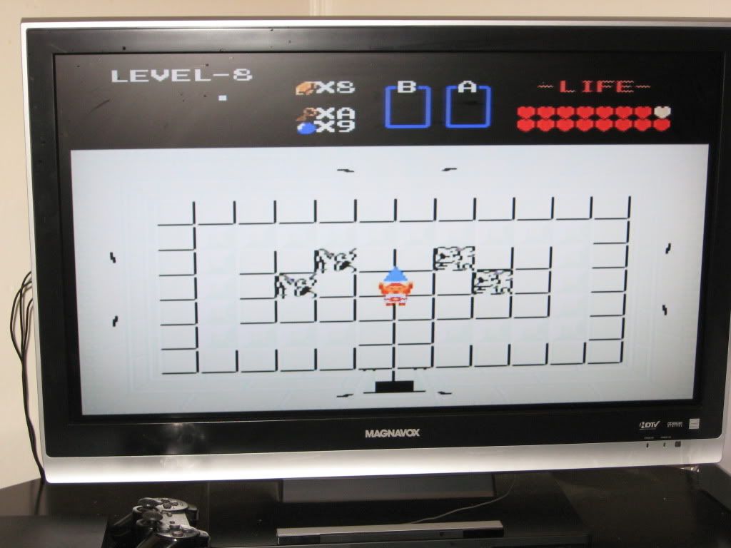 This is it: the last of the real dungeons in the first game (the final dungeon leading to Ganon never really counts, does it?) The paneling again leaves a lot to be desired, this green almost made me sick as I ventured through these halls. In addition, just like in the previous level, it seems like being fully armed and having the magical sword in hand, the game has now met its match: us. Nothing in this dungeon, no puzzle nor any particular action sequence was notable for its difficulty and Link and I swept through each corridor through ease, and got our hands FINALLY on the magic wand. The second quest keeps long-distance weaponary out of your hands as long as it can (granted, one can excuse this for as long as Link has full-health he has an awesome long-distance weapon in his sword). Not to mention something that really doesn't make since is the magic book, an item that powers up this weapon...you get much earlier in the game. Okay...