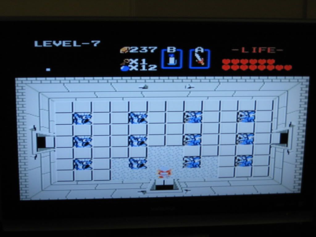 The first quest's level seven was a walk in the park with a boss of no real challenge either. Second quest's level seven is little different, with a fairly straight-forward path. (After all, this dungeon is shaped like a spiral...where can you go?) Not to mention it seems like the game is baiting you for the final dungeon, but one must also remember that at this point we are near fully equipped. Of course things seem easier now. One way or the other, this dungeon didn't offer much challenge and we quickly got through its confines and obtained the second-to-last piece of the triforce. Almost done.