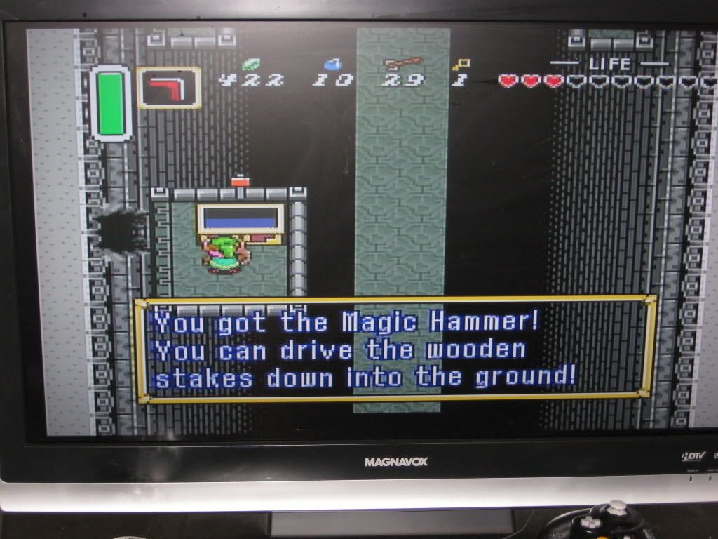 Deep in the confines of the Palace of Darkness, Link finds the Magic Hammer which is a nice little weapon and the door to several puzzle solutions in the over-world. We won't beat our next boss battle without it, so let's keep foraging! The Palace of Darkness really isn't too complicated or difficult, one just needs to pay attention to the path ahead of them and keep pressing forward, not worrying about the dark because it's not too scary...it just makes things a little more difficult to traverse.