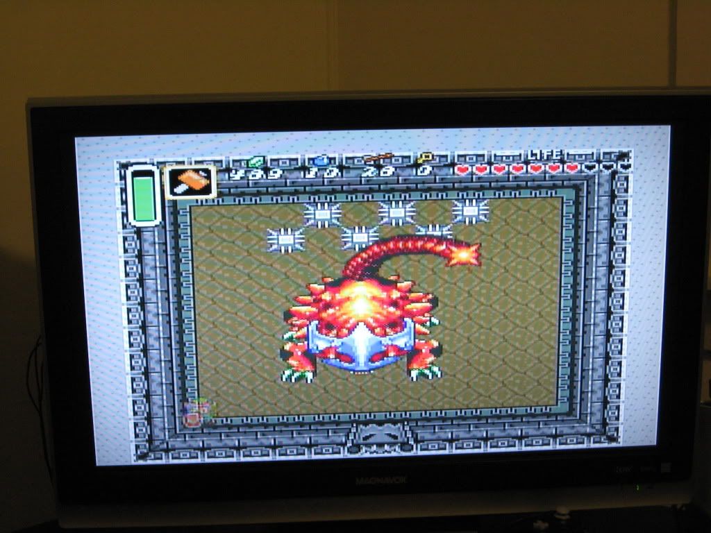The Helmasaur King is the boss of the Palace of Darkness. He can be quite a pain in the butt, and is quite damaging. Those who don't know what they are doing are going to have the hardest time, but that's always the point of Zelda: seasoned players will have a much easier time with this boss: simply hammer away at his mask then slice and dice at his face, all the time taking time to play defense in the form of avoidance. Hit and run seems to work wonders against many Zelda bosses.